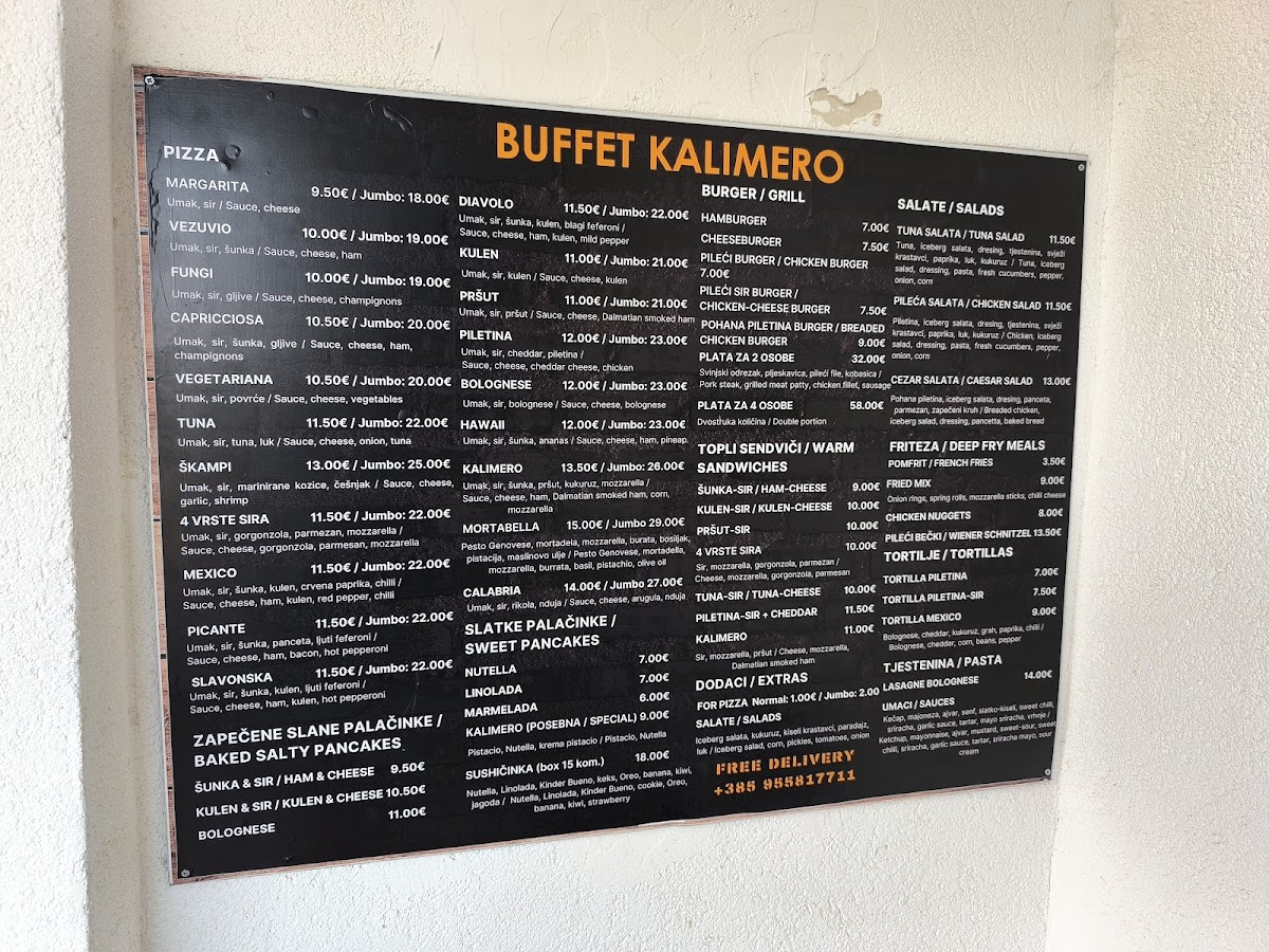 Welcome to Pizzeria Kalimero, a charming takeaway spot located at Ul. Franje Tuđmana 25, Vir, Croatia. Here, you'll discover a menu that is a true celebration of pizza craftsmanship. Customers rave about the superb quality and flavors, particularly highlighting the four cheese pizza, drizzled with olive oil for an added touch of richness. Other favorites include the Slavonská and Vesuvio pizzas, both praised for their delightful taste.
